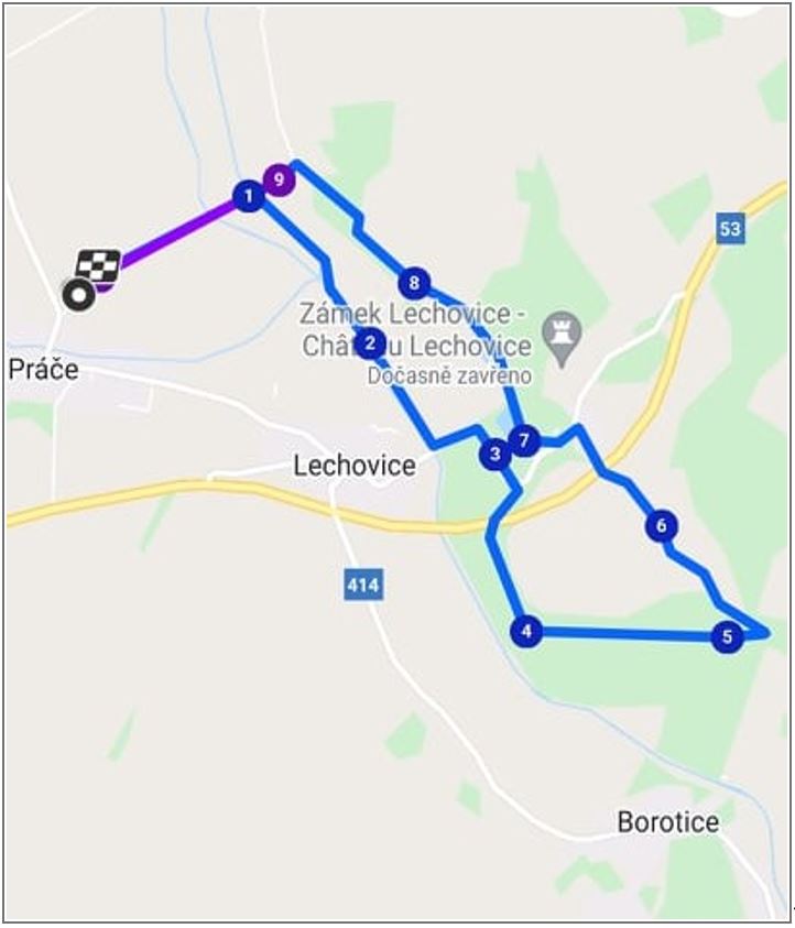 Místo startu: fotbalové hřiště Práče
